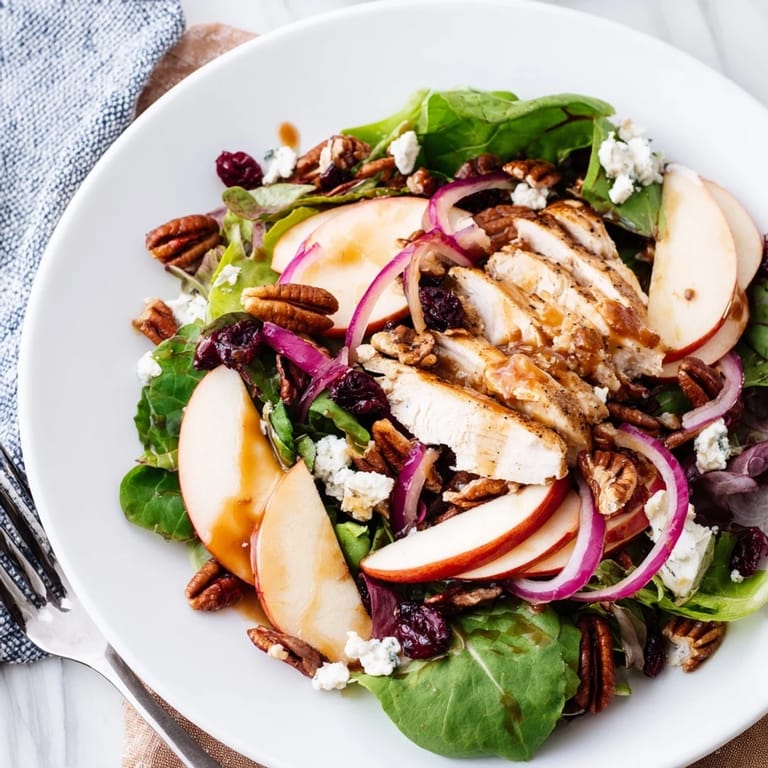 Grilled turkey, leftover pork tenderloin, or even crispy tofu work beautifully in place of chicken. Swap the feta for blue cheese if you want something bolder, or leave out the cheese entirely for a dairy-free version. If pecans aren't your thing, try walnuts or slivered almonds, they'll still give you that nutty crunch.
