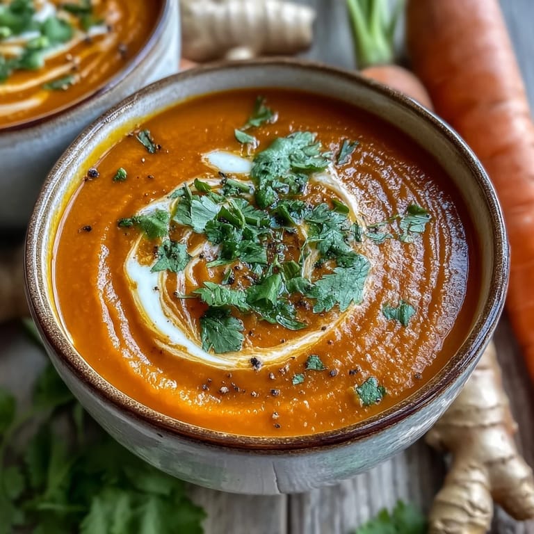 Pin It There's something about the smell of ginger hitting hot oil that makes a kitchen feel alive. I stumbled onto this carrot soup on a grey afternoon when I had a bag of carrots softening in the crisper and nothing but time on my hands. That first sip—bright, creamy, with just enough warmth from the ginger to make me pause—felt like I'd unlocked something I didn't know I was missing. It became my answer to almost everything: a rough day, a friend stopping by, that moment when you want something nourishing but don't want to fuss.
