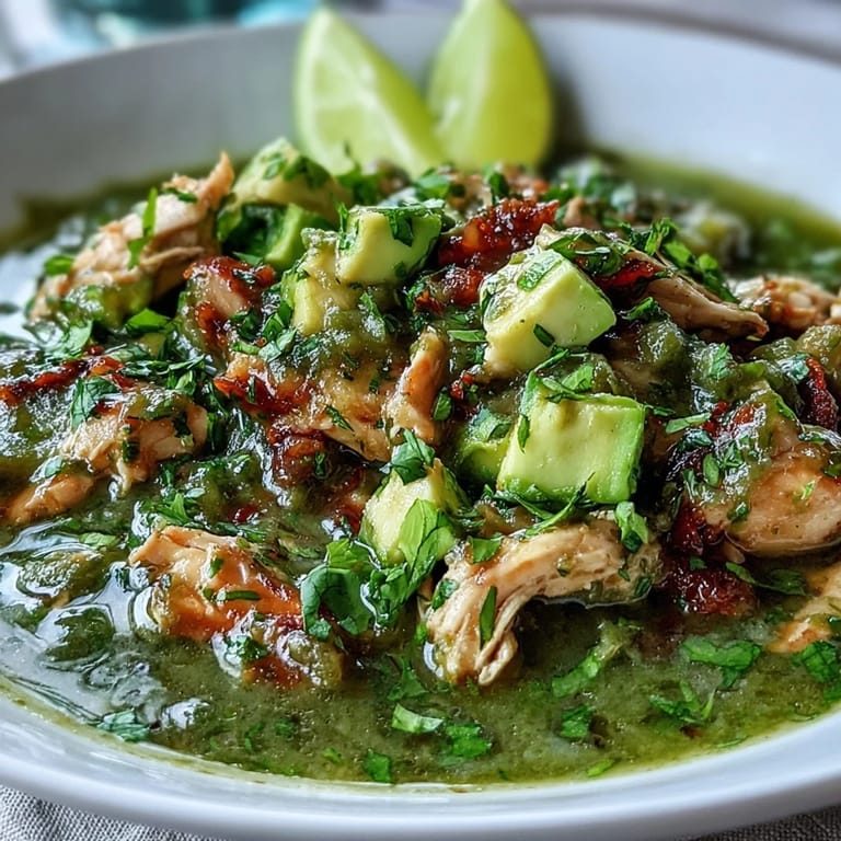Serve hot in bowls with warm corn or flour tortillas for scooping up the sauce and chicken. It pairs beautifully with Mexican rice, refried beans, or over a bed of cilantro-lime rice. Traditional garnishes like diced avocado, sliced radishes, chopped fresh cilantro, and lime wedges add fresh contrast.