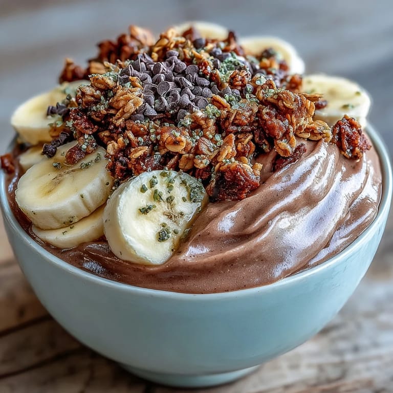 Pin It I started making these smoothie bowls on mornings when I needed something fast but filling, something that felt like dessert but wouldn't wreck my whole day. The frozen banana trick came from a friend who swore it made everything taste like soft serve, and she wasn't lying. Now I keep a bag of sliced bananas in the freezer at all times, ready to blend into this thick, fudgy base that you can eat with a spoon. It's become my go-to when I want chocolate for breakfast without any guilt.