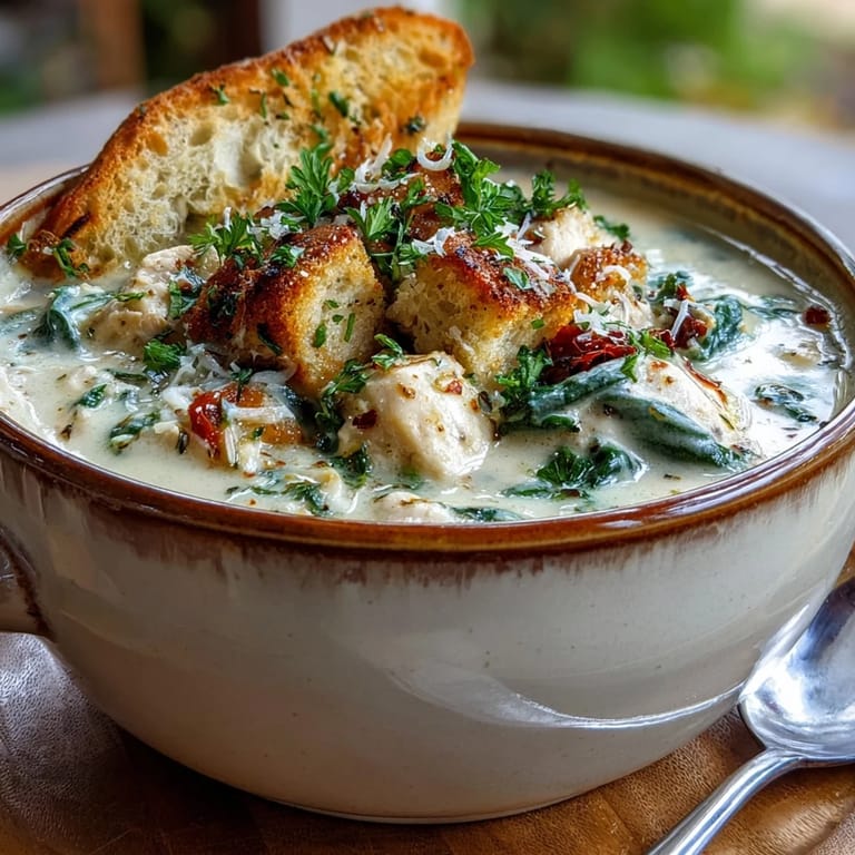 Pin It The kitchen was cold that evening, and I wanted something that would warm us from the inside out without spending hours at the stove. I had chicken breasts thawing and a block of Parmesan that needed using, so I started with garlic and onions sizzling in olive oil. The smell alone made my daughter wander in from her homework. By the time I stirred in the cream and watched it swirl into the broth, I knew this soup was going to be one of those recipes I'd make again and again.