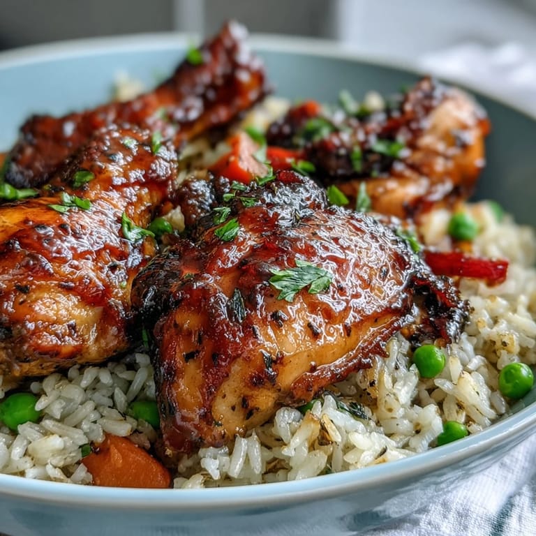 Pin It My weeknight dinner rotation changed completely when I threw caution to the wind and dumped everything into one pan instead of juggling three burners and a rice cooker. The chicken sizzled, the honey bubbled into the BBQ sauce, and suddenly the kitchen smelled like a backyard cookout even though it was drizzling outside. I stirred the rice right into the same pan, half-expecting a mushy disaster, but twenty minutes later I had fluffy grains soaking up all that smoky sweetness. My youngest peeked over the counter and asked if we were having a party. I realized then that good food does not need an occasion, just a skillet and a little boldness.