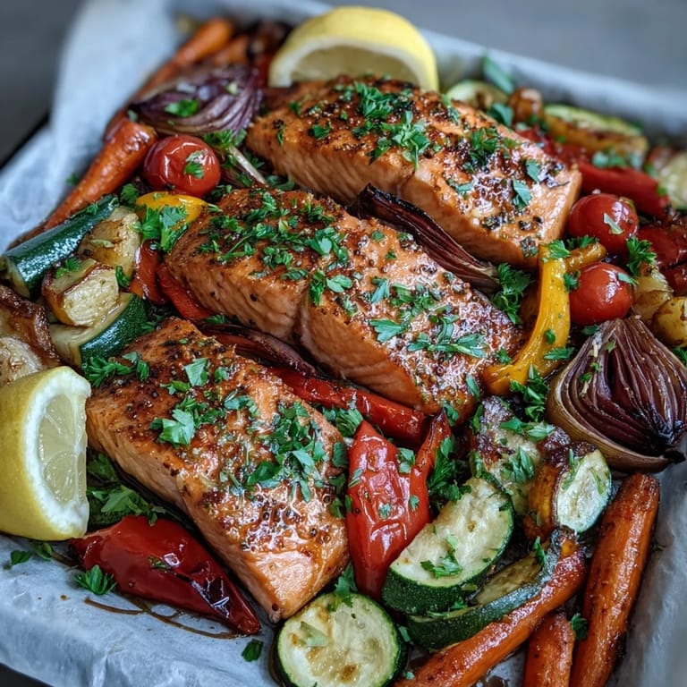 Pin It My neighbor handed me a beautiful salmon fillet one Tuesday evening, fresh from her fishing trip, and I suddenly realized I'd been overthinking dinner for weeks. That night, I threw everything I had onto a sheet pan, tossed it in the oven, and walked away—no fussing, no multi-step sauces, just honest food that came together while I poured a glass of wine. It was the kind of meal that made me wonder why I'd ever spent hours at the stove when this was possible.