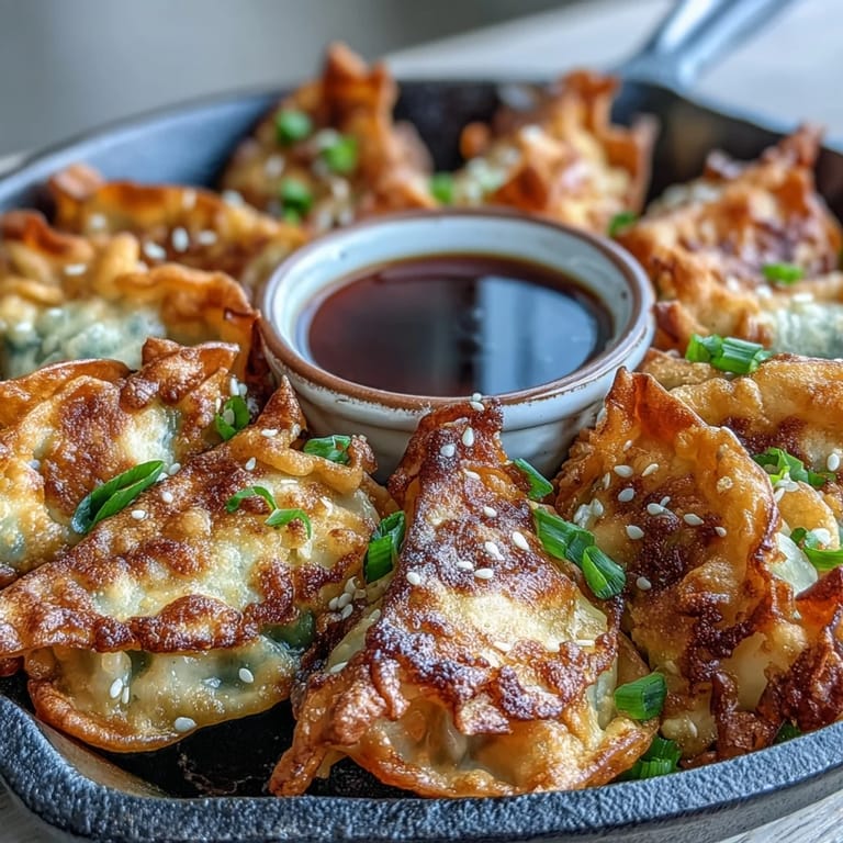 Pin It There's something magical about the sound of dumplings hitting hot oil, that immediate sizzle that makes you stand a little taller in the kitchen. My neighbor once handed me a bag of wonton wrappers with a grin, saying they were easier than I thought, and honestly, she was right. These smashed gyozas became my answer to those nights when I wanted something that felt fancy but didn't require hours of folding or fussing. The beauty is in how forgiving they are, how a simple filling and a hot pan transform into something crispy and golden in minutes.