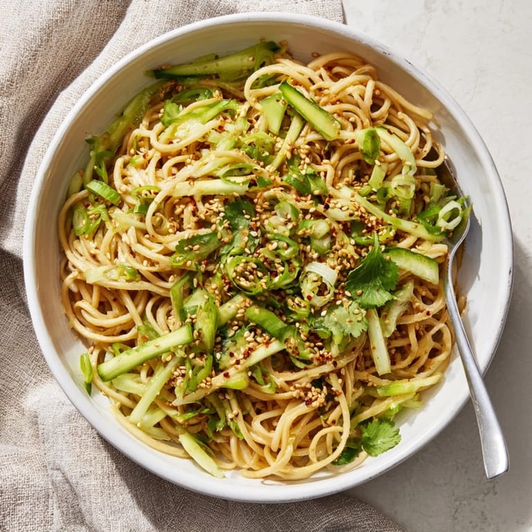 Pin It I threw this together on a Tuesday night when the kitchen felt too hot for anything cooked and my fridge was down to half a cucumber and some limp spring onions. The noodles chilled under cold water while I whisked that dressing, and the smell of toasted sesame oil mixing with chili heat made me forget I was tired. By the time I tossed everything together, I realized I'd made something I actually wanted to eat, not just something to get dinner over with. It's been my go-to ever since when I need food that feels bright and alive without much effort.
