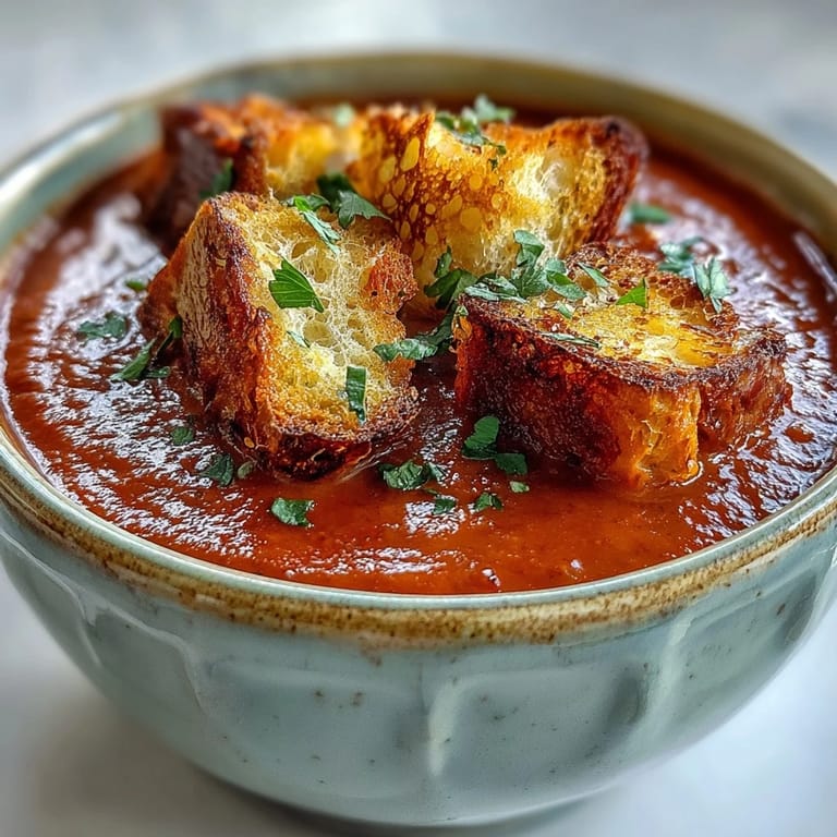 Add croutons just before serving rather than storing them in the soup. The contrast between hot, velvety soup and crispy, golden croutons is essential to the dish's appeal.